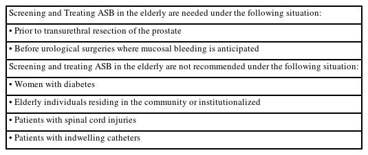 Table 2.Recommendations for asymptomatic bacteriuria (ASB) in the elderly